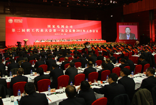 1月7日上午,国家电网公司第二届职工代表大会第一次会议暨2011年工作会议在京隆重开幕。来自公司系统的400余名代表齐聚北京,共商公司“十二五”改革与发展大计。